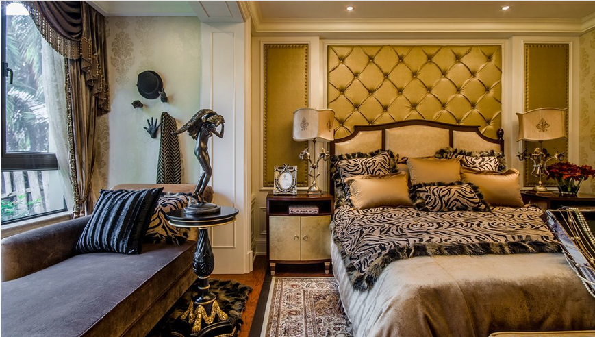 欧式别墅卧室床头软包皮背景墙